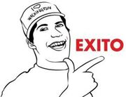Exito es un meme que se utiliza en burla de una mala escritura o pronunciación del idioma inglés por parte de un hispanoparlante, su origen es de un comercial que salió en 2010 en los canales de televisión pagada, sobre una compañia online de cursos de inglés llamada OpenEnglish.com donde uno de los sujetos estudia ahí y el otro recibe el curso de inglés anticuado, ambos van juntos en un avión y al acercarseles la asafata les dice en inglés que están ubicados en la puerta de emergencia que dice EXIT (salida) a lo que el sujeto del curso anticuado le responde "EXITO", he ahí el origen del meme. Su uso como meme se originó en 2011 en páginas como OhDios y desde ahí a explotado con más frecuencia en MemeChef y redes sociales como Facebook.