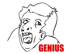 Genius es una cara de rage comic utiliza para señalar irónicamente la estupidez de la idea de alguien o el acto de realizar algo tonto. A menudo se utiliza en la auto-referencia, pero puede ser utilizado en referencia a otras personas. Se cree que el dibujo de la mueca en este meme guarda semejansa al de una persona con Parálisis Cerebral debido a la disposición de sus ojos desorbitados, su postura en los hombros y gesto facial. Pero, también podría ser una persona descuidada, normalmente bajo el nombre de "Idiota" sufriendo de una anomalía llamada elefantitis transgenica, o locura desorbitante.